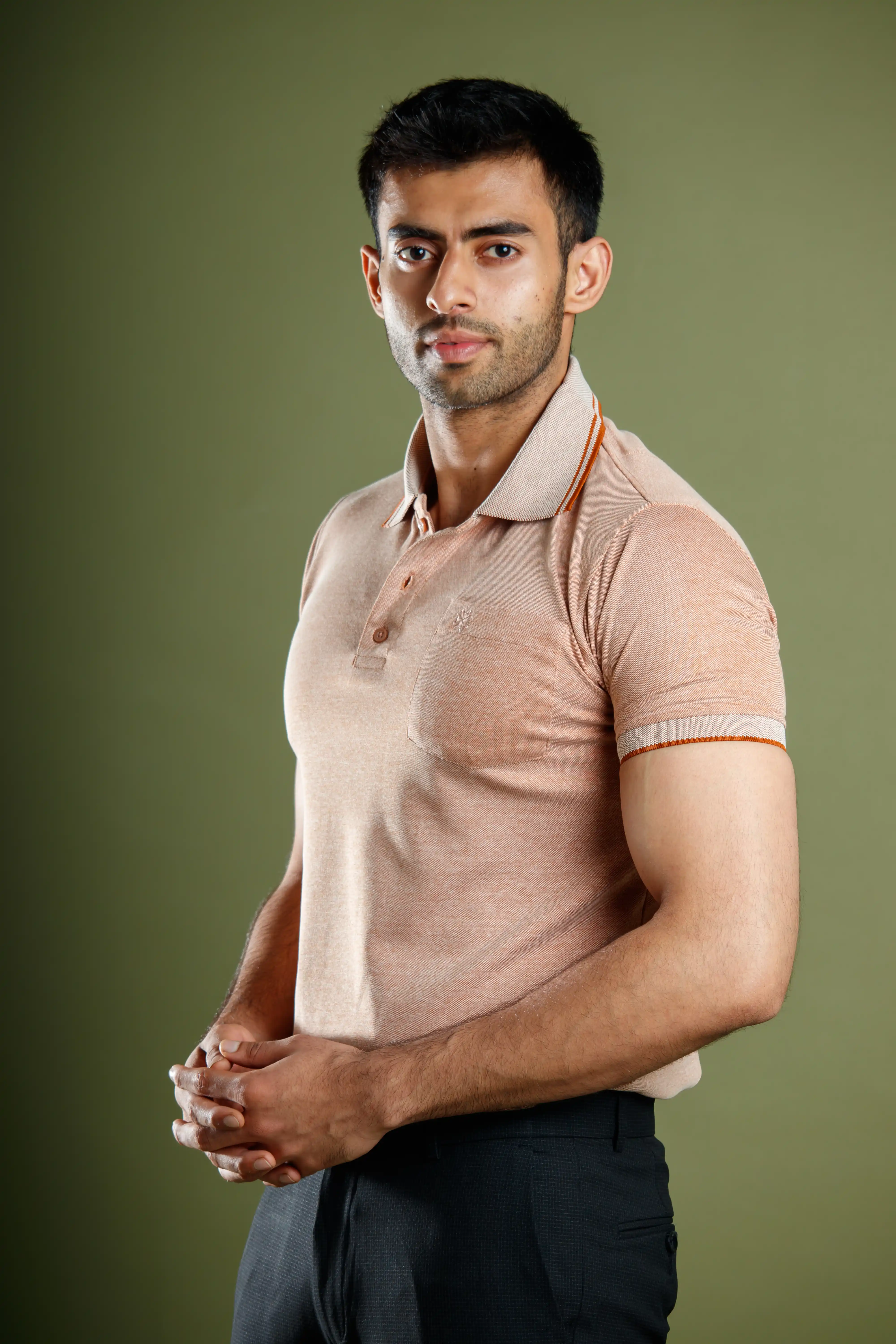 Available in eight versatile colors—Camel, Navy, Peach, Pista, Sunshine, Black, Almond, and Sky—it’s the polo you’ll reach for again and again.