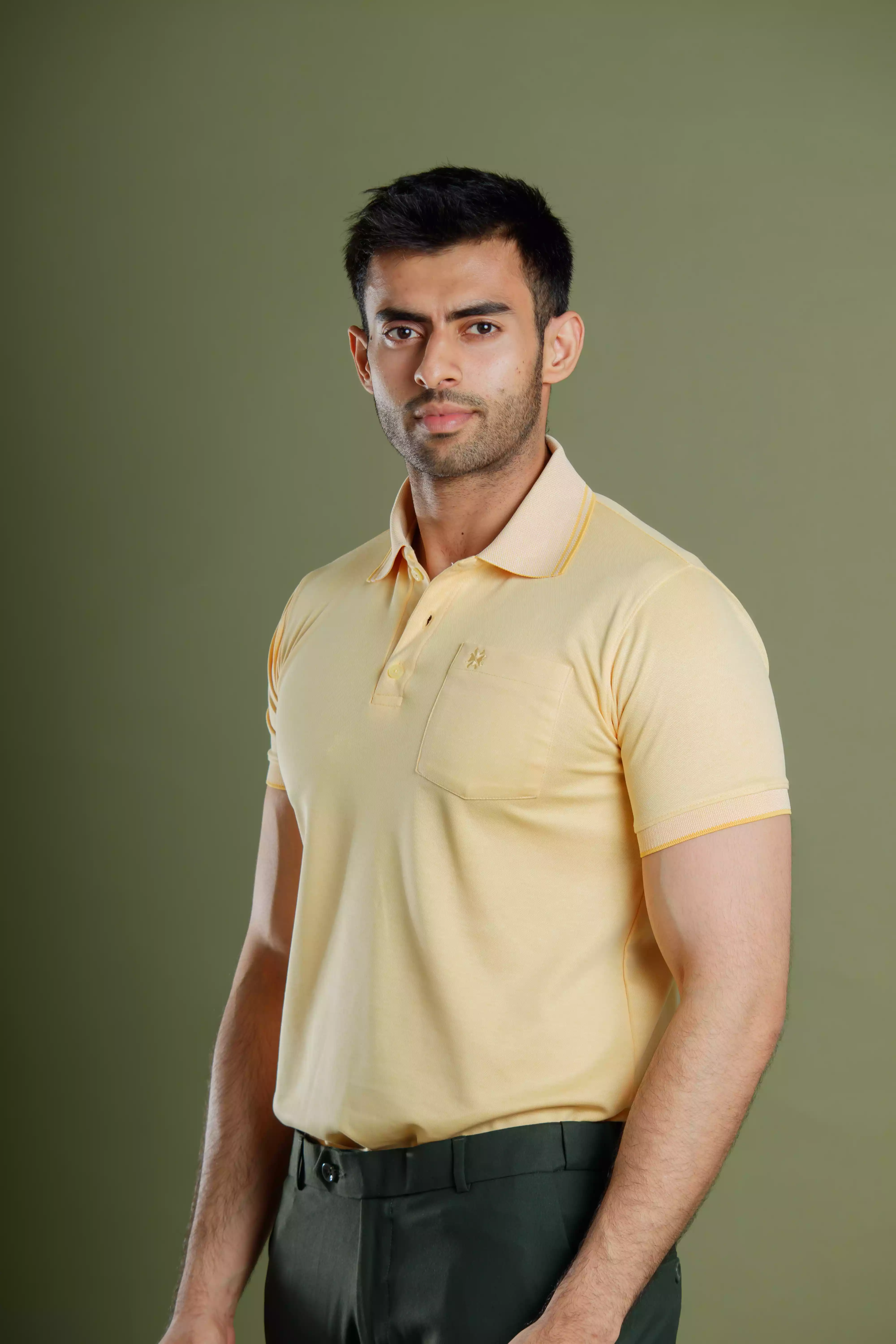 Available in eight versatile colors—Camel, Navy, Peach, Pista, Sunshine, Black, Almond, and Sky—it’s the polo you’ll reach for again and again.